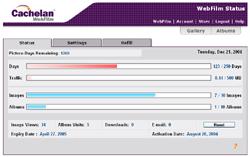See what your visitors are doing using the WebFilm status screens to automatically track information like counts of photo views, album views and website links. Enable feedback email if a direct response from visitors is desired. These features are useful in determining the success of an advertisement, an album sent to a group after an event or determining page views from a website link.